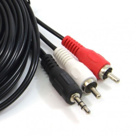 Cable de alta calidad.Conectores Jack 3.5 mm Tipo macho y RCA tipo macho.Color negro.Certificado CE y ROHS.Longitud 10 M.Embalaje bolsa retail con auto-cierre etiqueta con descripción y código de barras.